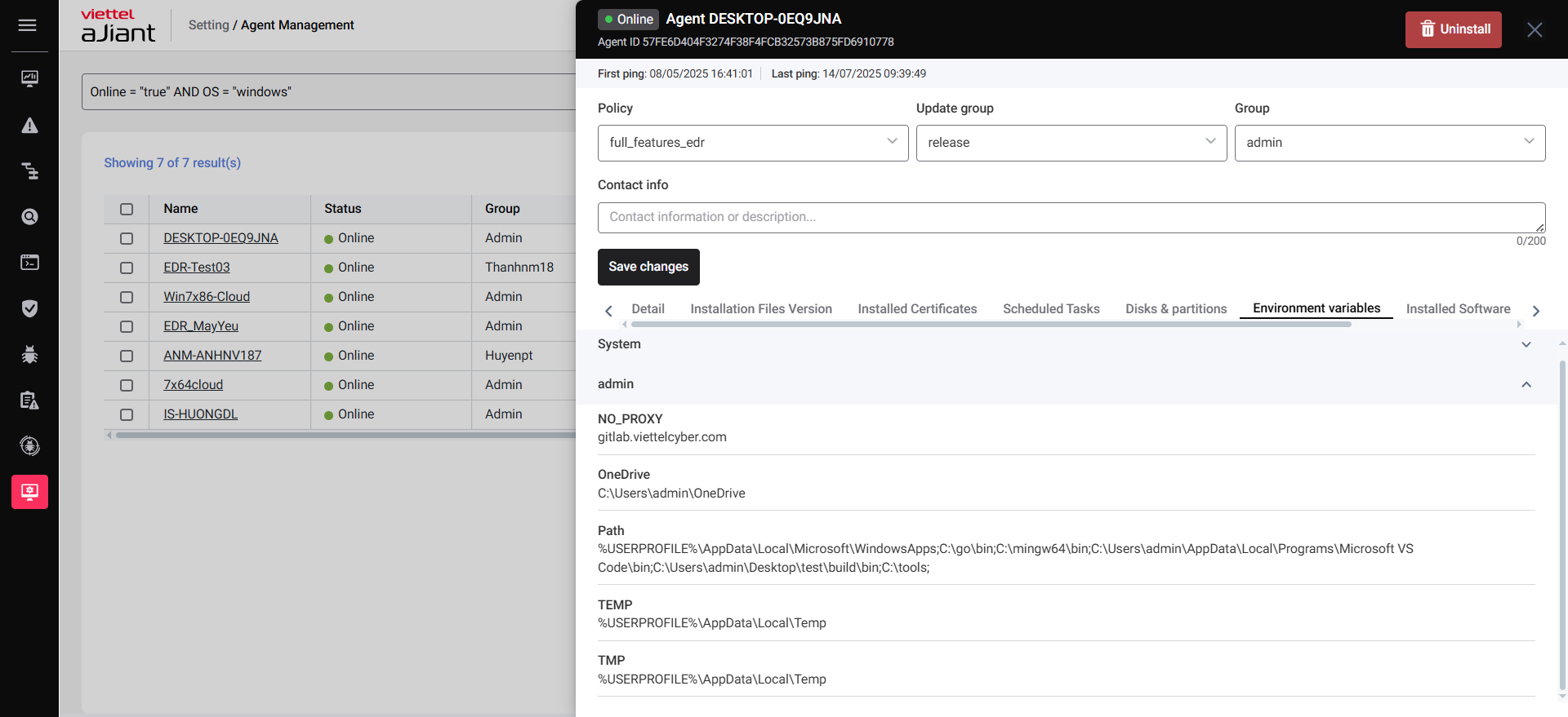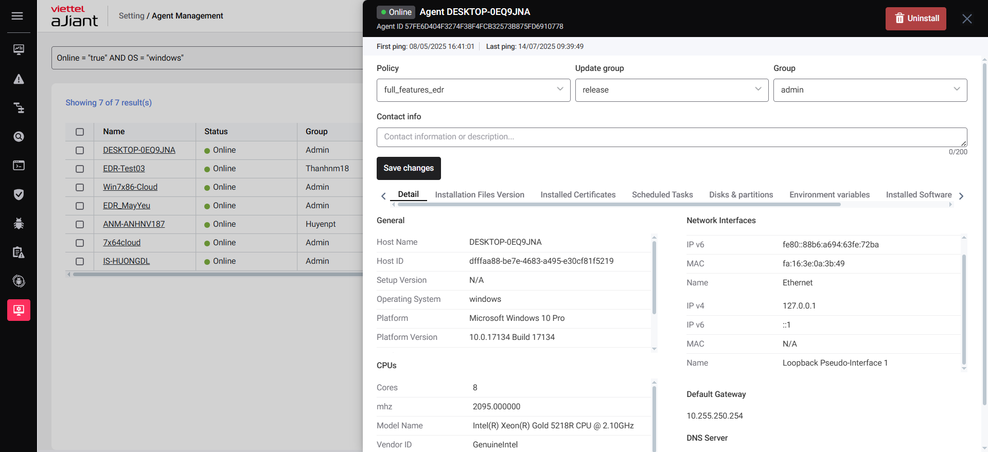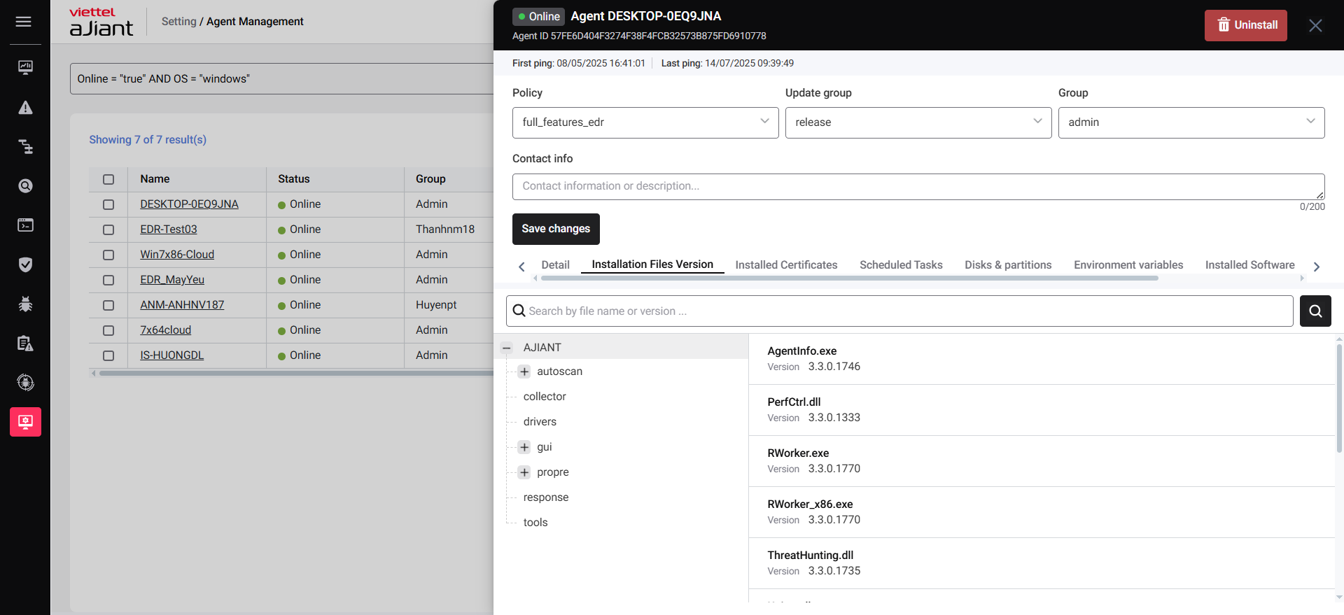 Agent Management feature allows you to manage general information of all agents (devices) within your organization.