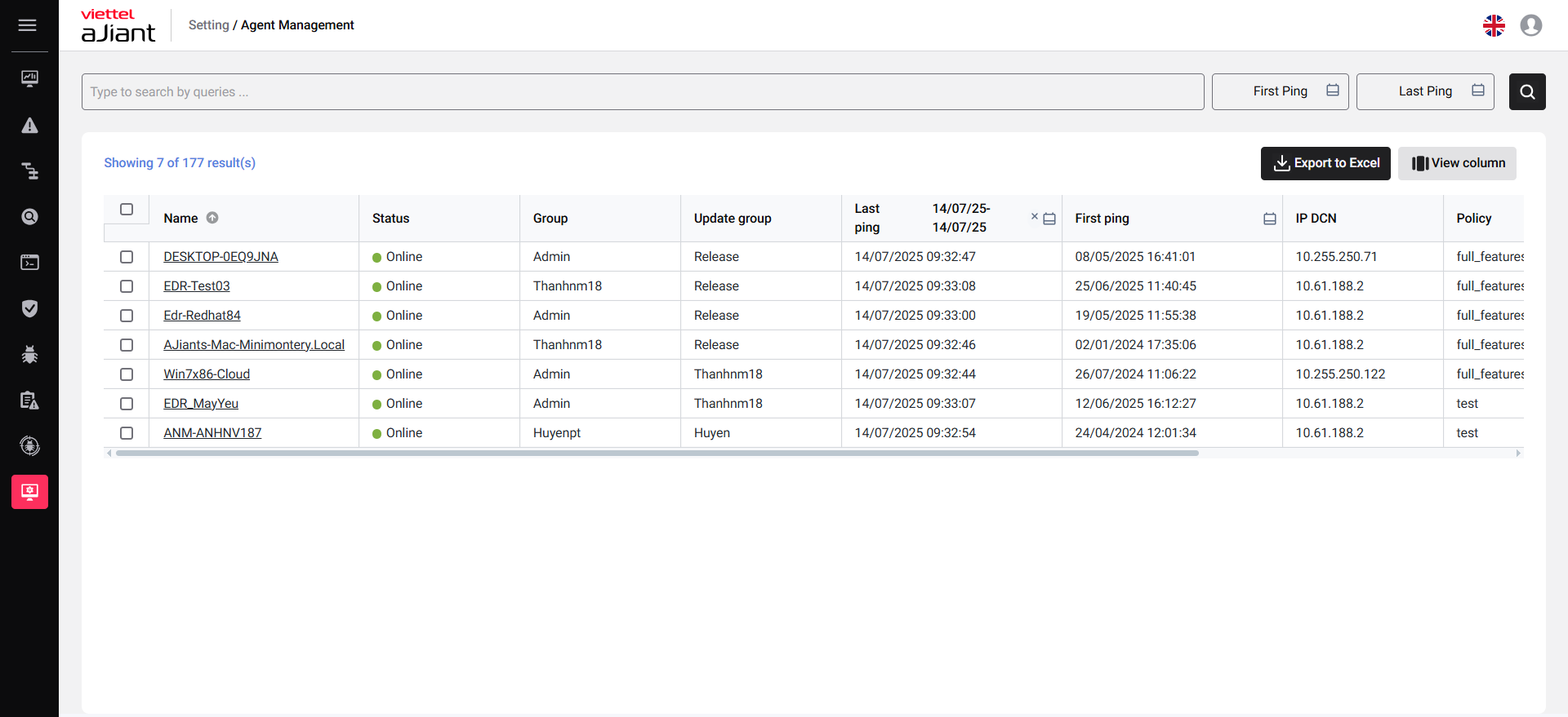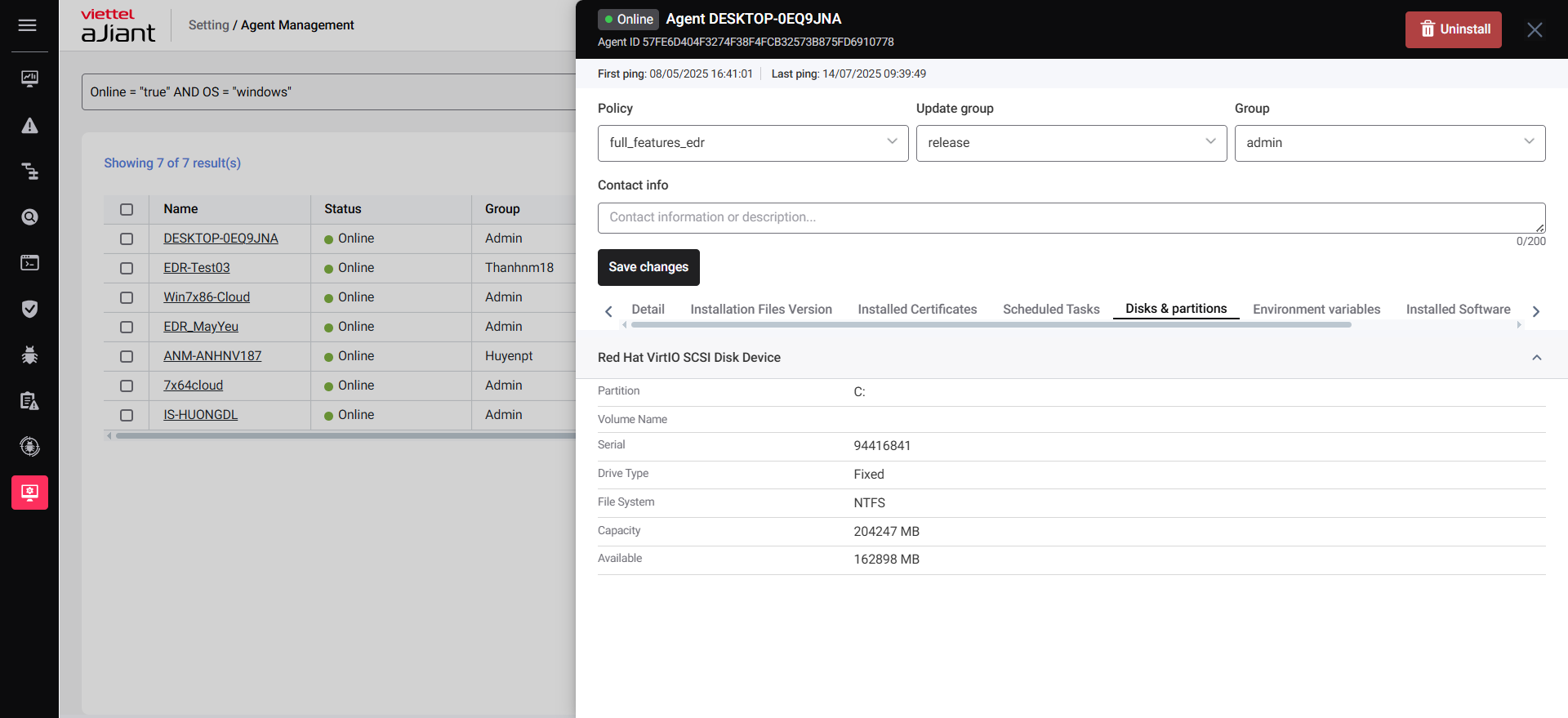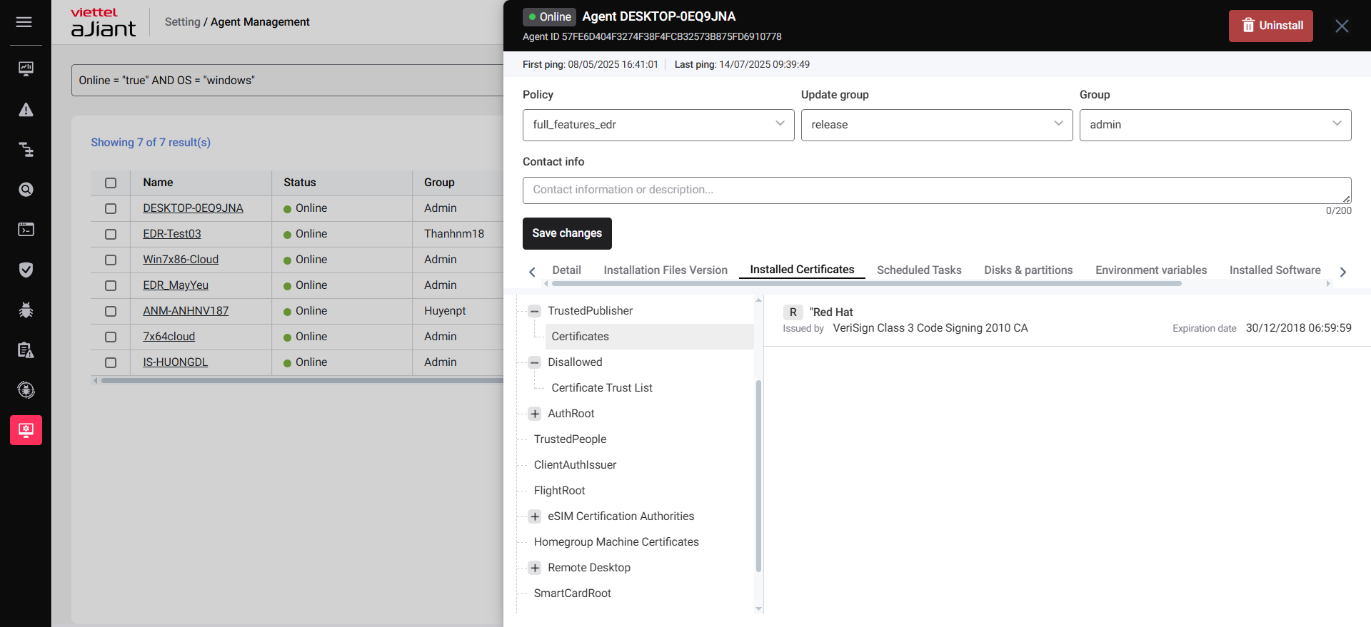 Agent Management feature allows you to manage general information of all agents (devices) within your organization.