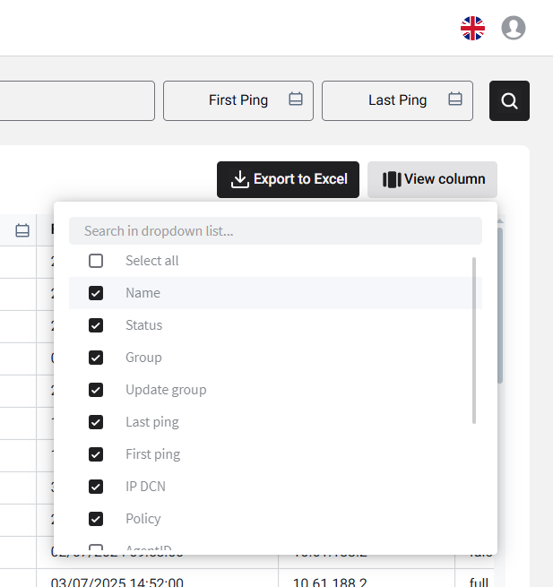 - You can download all agent information as a CSV file for easy viewing and management.